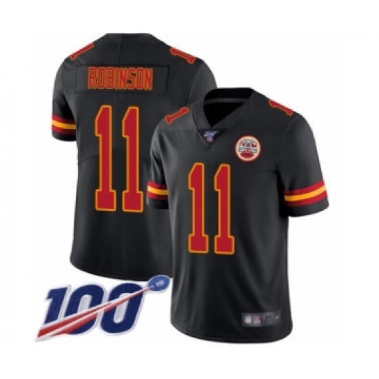 >Men's Kansas City Chiefs #11 Demarcus Robinson Limited Black Rush Vapor Untouchable 100th Season Football Jersey