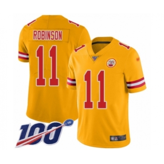 >Men's Kansas City Chiefs #11 Demarcus Robinson Limited Gold Inverted Legend 100th Season Football Jersey