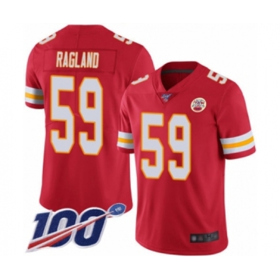 >Men's Kansas City Chiefs #59 Reggie Ragland Red Team Color Vapor Untouchable Limited Player 100th Season Football Jersey
