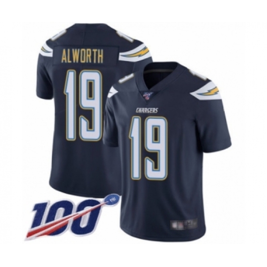 >Men's Los Angeles Chargers #19 Lance Alworth Navy Blue Team Color Vapor Untouchable Limited Player 100th Season Football Jersey