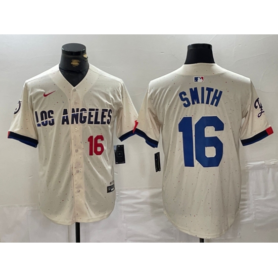 Men's Los Angeles Dodgers #16 Will Smith Number Cream 2024 City Connect Limited Stitched Jersey