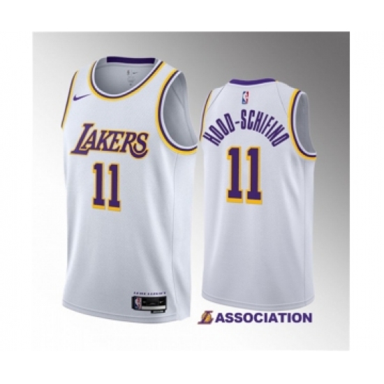>Men's Los Angeles Lakers #11 Jalen Hood-Schifino White 2023 Draft Association Edition Stitched Basketball Jersey