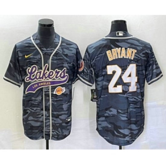 Men's Los Angeles Lakers #24 Kobe Bryant Black Camo Cool Base Stitched Baseball Jersey1