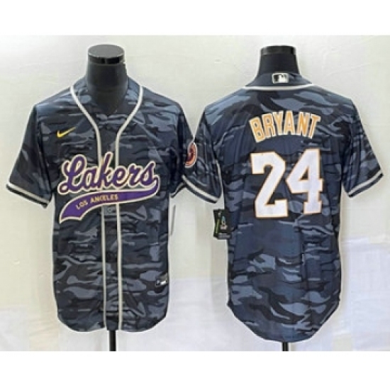 Men's Los Angeles Lakers #24 Kobe Bryant Black Camo Cool Base Stitched Baseball Jersey2