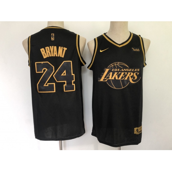 Men's Los Angeles Lakers #24 Kobe Bryant Black Gold Swingman Basketball Jersey