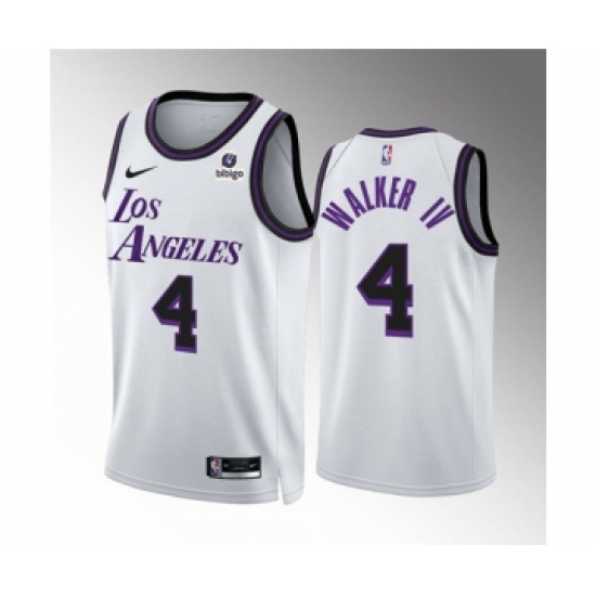 >Men's Los Angeles Lakers #4 Walker IV White City Edition Stitched Basketball Jersey