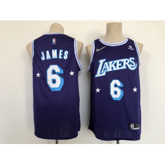 >Men's Los Angeles Lakers #6 LeBron James Nike Purple 2021-22 Swingman City Jersey