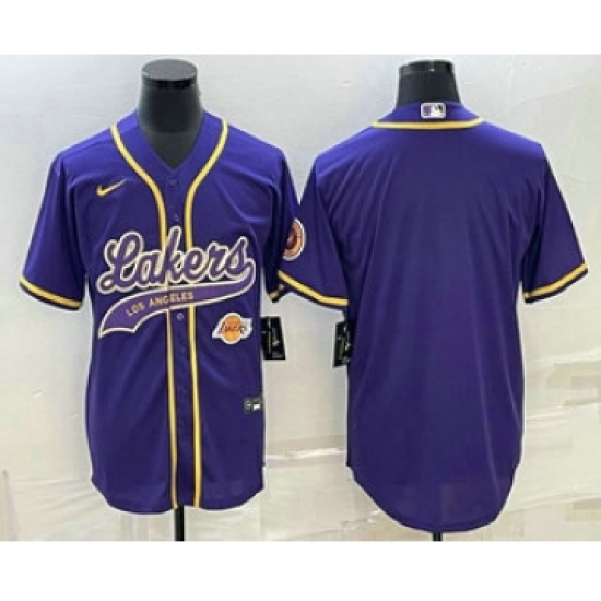 Men's Los Angeles Lakers Blank Purple With Cool Base Stitched Baseball Jersey