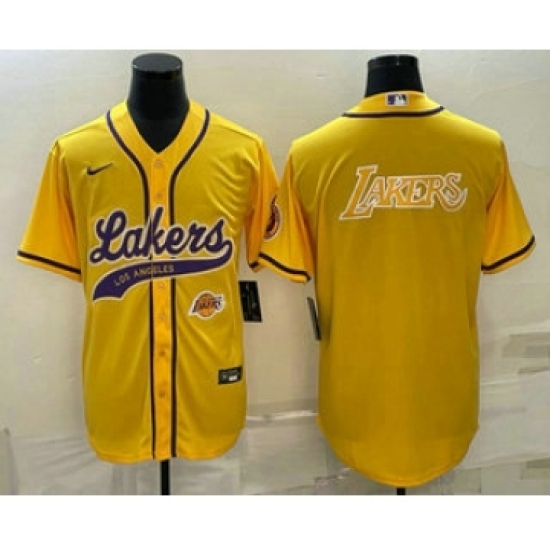 >Men's Los Angeles Lakers Yellow Big Logo With Cool Base Stitched Baseball Jerseys