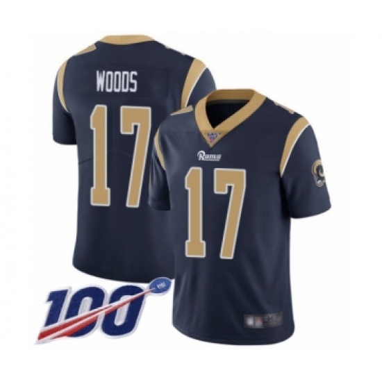 Men's Los Angeles Rams #17 Robert Woods Navy Blue Team Color Vapor Untouchable Limited Player 100th Season Football Jersey