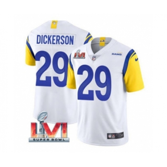 >Men's Los Angeles Rams #29 Eric Dickerson White 2022 Super Bowl LVI Vapor Limited Stitched Jersey