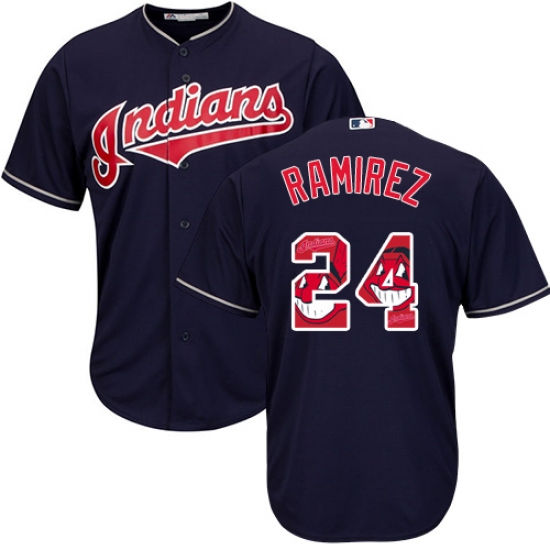 Men's Majestic Cleveland Indians #24 Manny Ramirez Authentic Navy Blue Team Logo Fashion Cool Base MLB Jersey