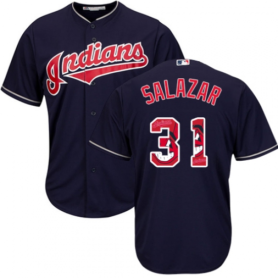 Men's Majestic Cleveland Indians #31 Danny Salazar Authentic Navy Blue Team Logo Fashion Cool Base MLB Jersey