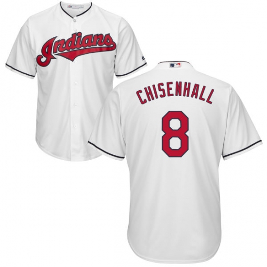 Home>MLB>Cleveland Indians>Lonnie Chisenhall>Men's Majestic Cleveland Indians #8 Lonnie Chisenhall Replica White Home Cool Base MLB Jersey