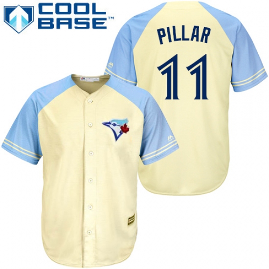 Home>MLB>Toronto Blue Jays>Kevin Pillar>Men's Majestic Toronto Blue Jays #11 Kevin Pillar Replica Cream Exclusive Vintage Cool Base MLB Jersey