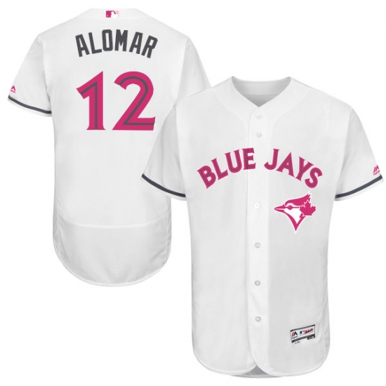 Men's Majestic Toronto Blue Jays #12 Roberto Alomar Authentic White 2016 Mother's Day Fashion Flex Base MLB Jersey