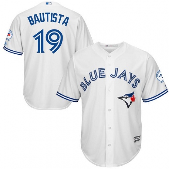Men's Majestic Toronto Blue Jays #19 Jose Bautista Replica White Home 40th Anniversary Patch MLB Jersey