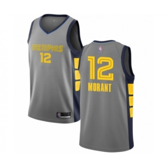 >Men's Memphis Grizzlies #12 Ja Morant Authentic Gray Basketball Jersey - City Edition