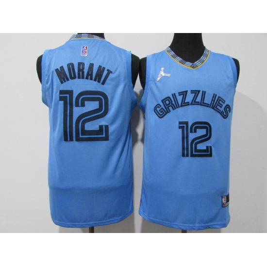 >Men's Memphis Grizzlies #12 Ja Morant Blue 75th Swingman Stitched Basketball Jersey