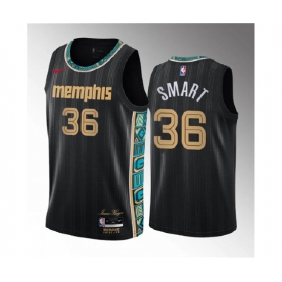 Men's Memphis Grizzlies #36 Marcus Smart Black 2023 Draft City Edition Stitched Basketball Jersey
