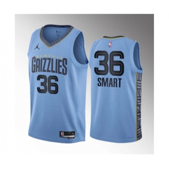 >Men's Memphis Grizzlies #36 Marcus Smart Blue 2023 Draft Statement Edition Stitched Basketball Jersey