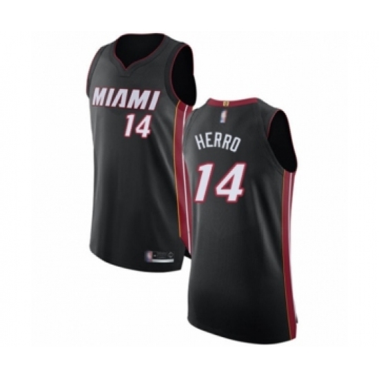 >Men's Miami Heat #14 Tyler Herro Authentic Black Basketball Jersey - Icon Edition