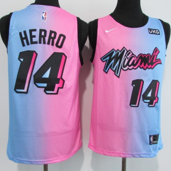 >Men's Miami Heat #14 Tyler Herro Pink-Blue Swingman Basketball Jersey