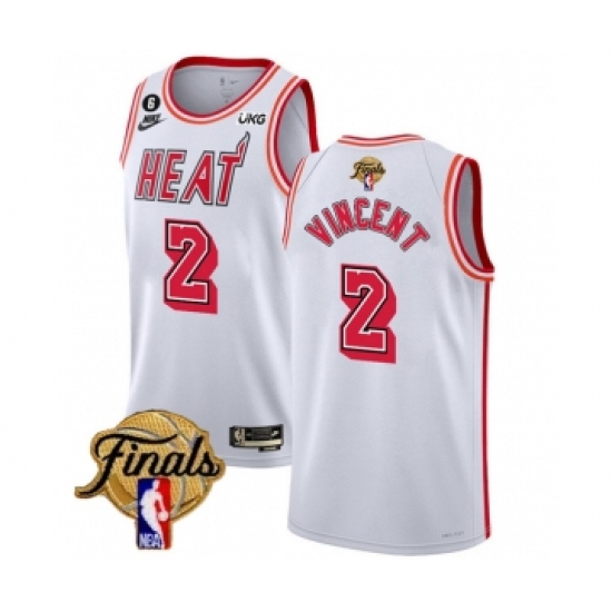 Men's Miami Heat #2 Gabe Vincent White 2023 Finals Classic Edition With NO.6 Stitched Basketball Jersey