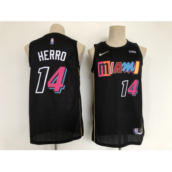 Men's Miami Heat 2021-22 City Edition #14 Tyler Herro Black Stitched Basketball Jersey