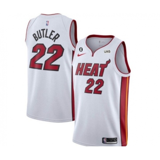 Men's Miami Heat #22 Jimmy Butler White With NO.6 Stitched Jersey
