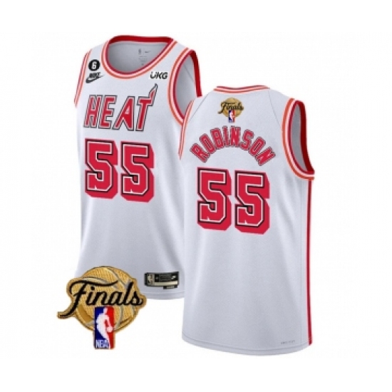 Men's Miami Heat #55 Duncan Robinson White 2023 Finals Classic Edition With NO.6 Stitched Basketball Jersey