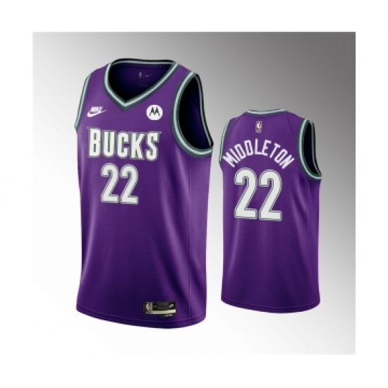 Men's Milwaukee Bucks #22 Khris Middleton 2022-23 Purple Classic Edition Swingman Stitched Basketball Jersey