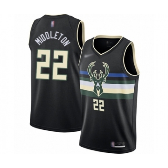 >Men's Milwaukee Bucks #22 Khris Middleton Authentic Black Finished Basketball Jersey - Statement Edition