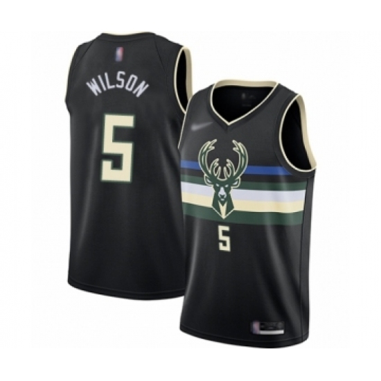 >Men's Milwaukee Bucks #5 D. J. Wilson Authentic Black Finished Basketball Jersey - Statement Edition
