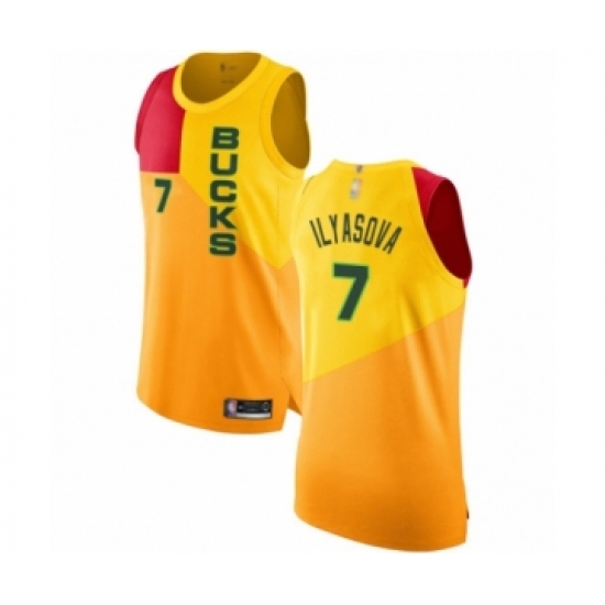 >Men's Milwaukee Bucks #7 Ersan Ilyasova Authentic Yellow Basketball Jersey - City Edition
