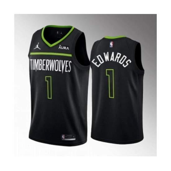 Men's Minnesota Timberwolves #1 Anthony Edwards Black City Stitched Jersey