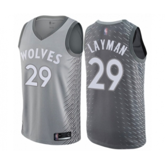 >Men's Minnesota Timberwolves #29 Jake Layman Authentic Gray Basketball Jersey - City Edition