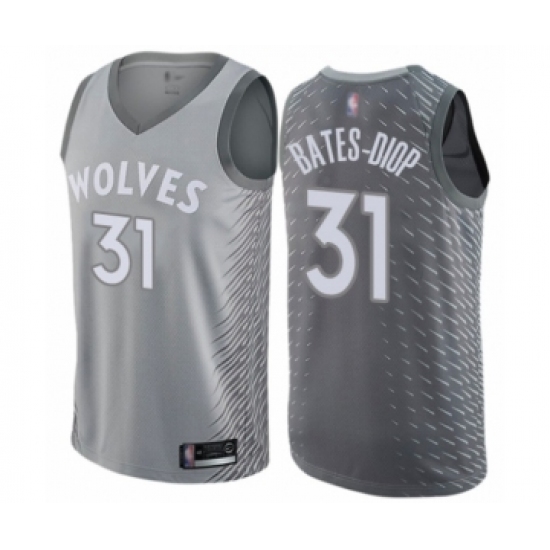 >Men's Minnesota Timberwolves #31 Keita Bates-Diop Authentic Gray Basketball Jersey - City Edition