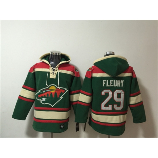>Men's Minnesota Wild #29 Marc-Andre Fleury Green Lace-Up Pullover Hoodie