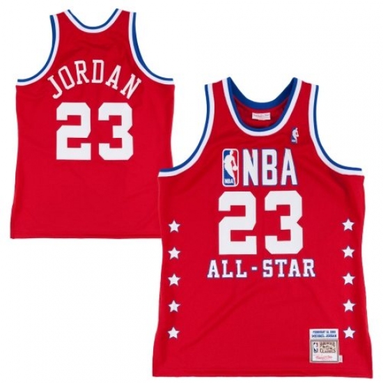 Men's Mitchell and Ness Chicago Bulls #23 Michael Jordan Swingman Red 1992 All Star Throwback NBA Jersey