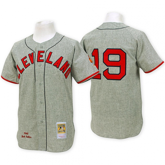 Home>MLB>Cleveland Indians>Bob Feller>Men's Mitchell and Ness Cleveland Indians #19 Bob Feller Authentic Grey Throwback MLB Jersey