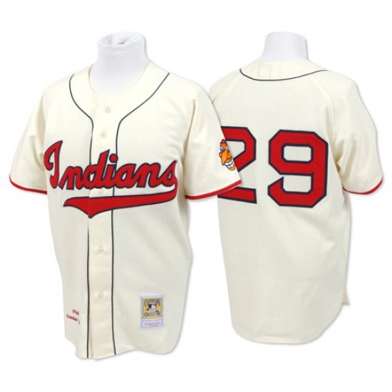 Men's Mitchell and Ness Cleveland Indians #29 Satchel Paige Authentic Cream Throwback MLB Jersey