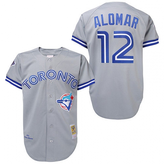Home>MLB>Toronto Blue Jays>Roberto Alomar>Men's Mitchell and Ness Toronto Blue Jays #12 Roberto Alomar Authentic Grey Throwback MLB Jersey