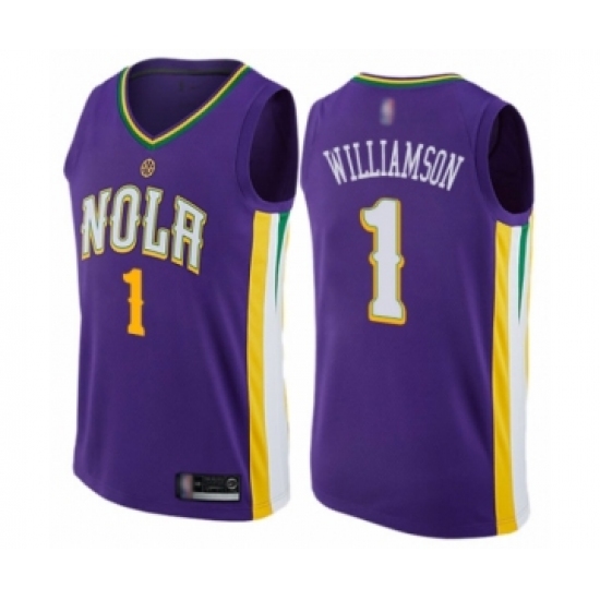 >Men's New Orleans Pelicans #1 Zion Williamson Swingman Purple Basketball Jersey - City Edition