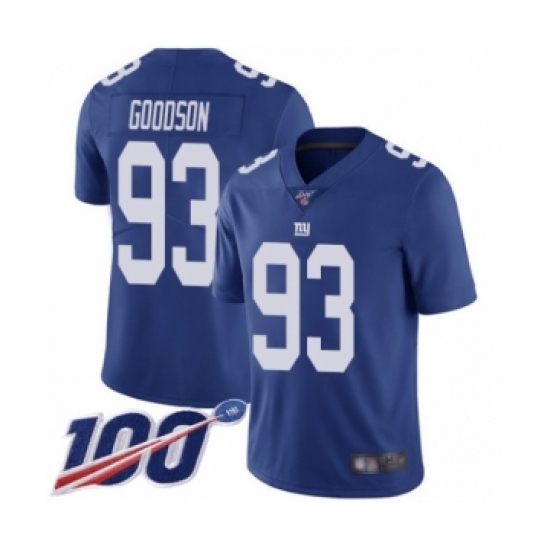 >Men's New York Giants #93 B.J. Goodson Royal Blue Team Color Vapor Untouchable Limited Player 100th Season Football Jersey