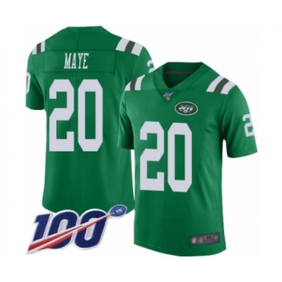 >Men's New York Jets #20 Marcus Maye Limited Green Rush Vapor Untouchable 100th Season Football Jersey
