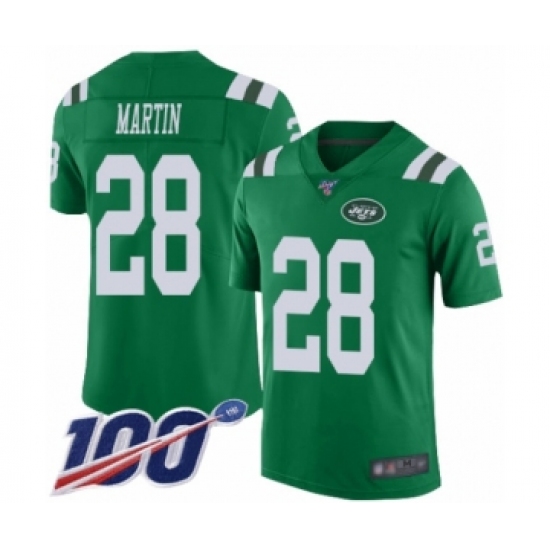 >Men's New York Jets #28 Curtis Martin Limited Green Rush Vapor Untouchable 100th Season Football Jersey