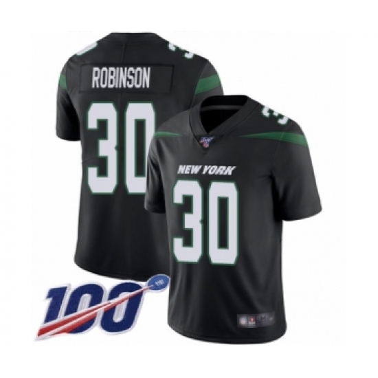 Men's New York Jets #30 Rashard Robinson Black Alternate Vapor Untouchable Limited Player 100th Season Football Jersey