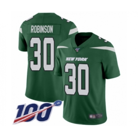 Men's New York Jets #30 Rashard Robinson Green Team Color Vapor Untouchable Limited Player 100th Season Football Jersey