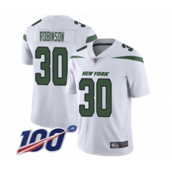 Men's New York Jets #30 Rashard Robinson White Vapor Untouchable Limited Player 100th Season Football Jersey